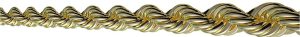 A rope chain in jewelry is a type of chain that is made up of small links that are assembled together to resemble a rope. The links are round in shape and are typically connected in a uniform pattern. Rope chains have a unique texture and are known for their timeless beauty. They are often used in necklaces, bracelets, and earrings. They can be worn by both men and women, and are available in a variety of thicknesses.